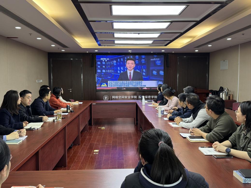 为深入学习贯彻习近平总书记给四所交通大学全体师生的重要回信精神,切实把思想和行动统一到党中央决策部署和学校工作要求上来,近日,网络安全学院(国家保密学院)党委通过理论学习中心组学习(扩大)会议、党支部学习研讨等多种形式,组织全院师生开展专题学习。