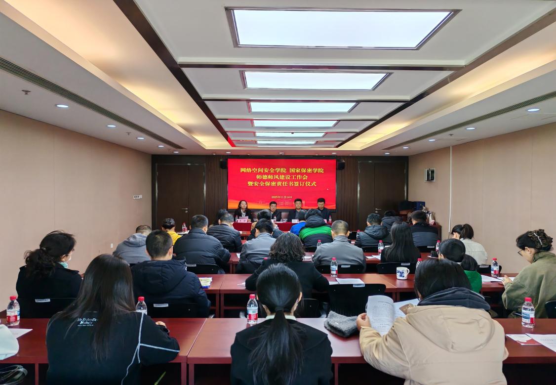 网络空间安全学院(国家保密学院)于11月14日上午,在交大科技大厦召开师德师风建设工作会暨安全保密责任书签订仪式。学院全体教职工参加会议,会议由学院党委副书记、副院长安志强主持。